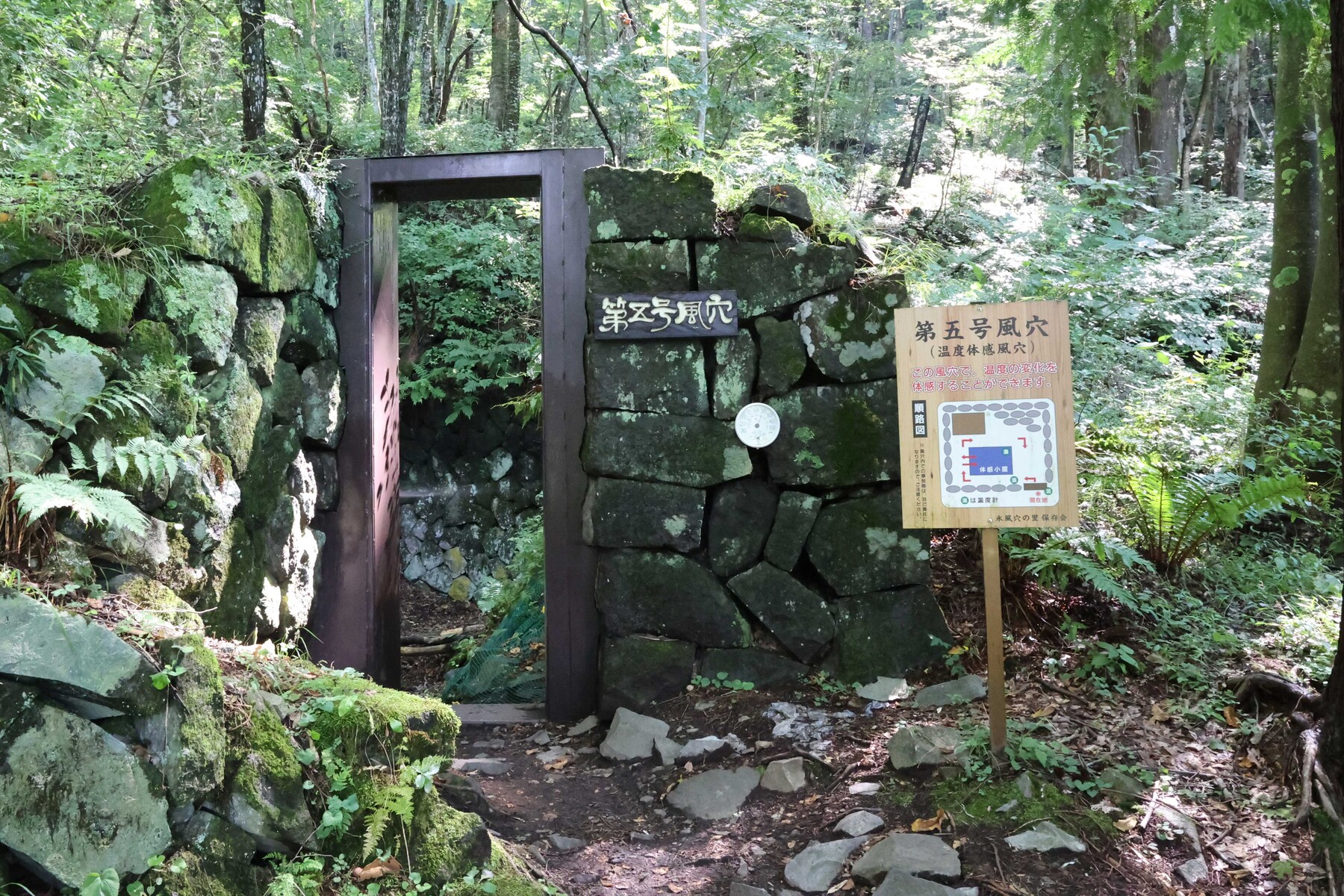 現在も氷風穴へ行くと、その痕跡を見ることができ、風穴の冷たさも体感できます(5号風穴)。そしてなんと、まだ現役稼働している風穴が1基(4号風穴)。